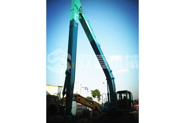 加長(cháng)臂:加長(cháng)臂是我們最常見(jiàn),使用時(shí)間更早的大小臂加長(cháng)臂,不需要伸縮缸控制。它通過(guò)大臂、小臂同時(shí)加長(cháng),配帶小挖斗,擴大機械的工作范圍。