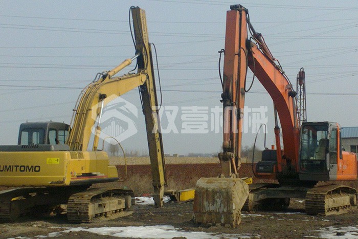 加長(cháng)臂:加長(cháng)臂是我們最常見(jiàn),使用時(shí)間更早的大小臂加長(cháng)臂,不需要伸縮缸控制。它通過(guò)大臂、小臂同時(shí)加長(cháng),配帶小挖斗,擴大機械的工作范圍。