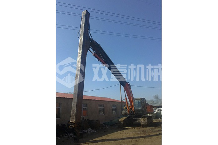 加長(cháng)伸縮臂:此款采用大臂加長(cháng),小臂三節伸縮,很適合沉井類(lèi)工程施工。其通過(guò)大臂加長(cháng)達到井筒要求的高度,再利用小臂向下伸縮,配帶挖掘斗進(jìn)行井下挖掘。